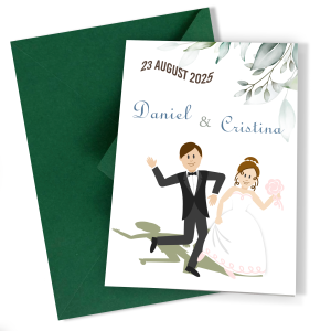 Invitatii nunta haioase cu plic Verde Padure – Mire si mireasa – INC-41