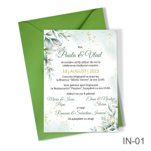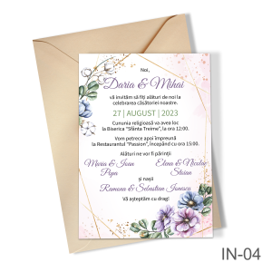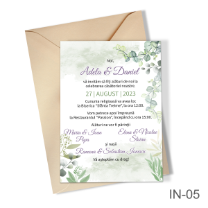 Invitatii nunta simple cu decoratiuni florale – IN-04