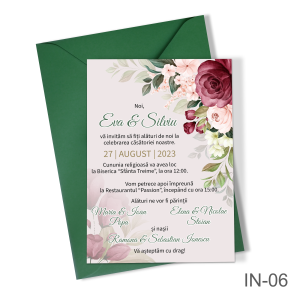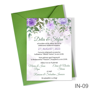Invitatii nunta simple cu decoratiuni florale – IN-08