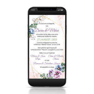 Puteti comanda aici o invitatie pentru nunta in format digital pe care o puteti trimite online pe email, telefon sau social media – facebook, instagram, tiktok, etc.