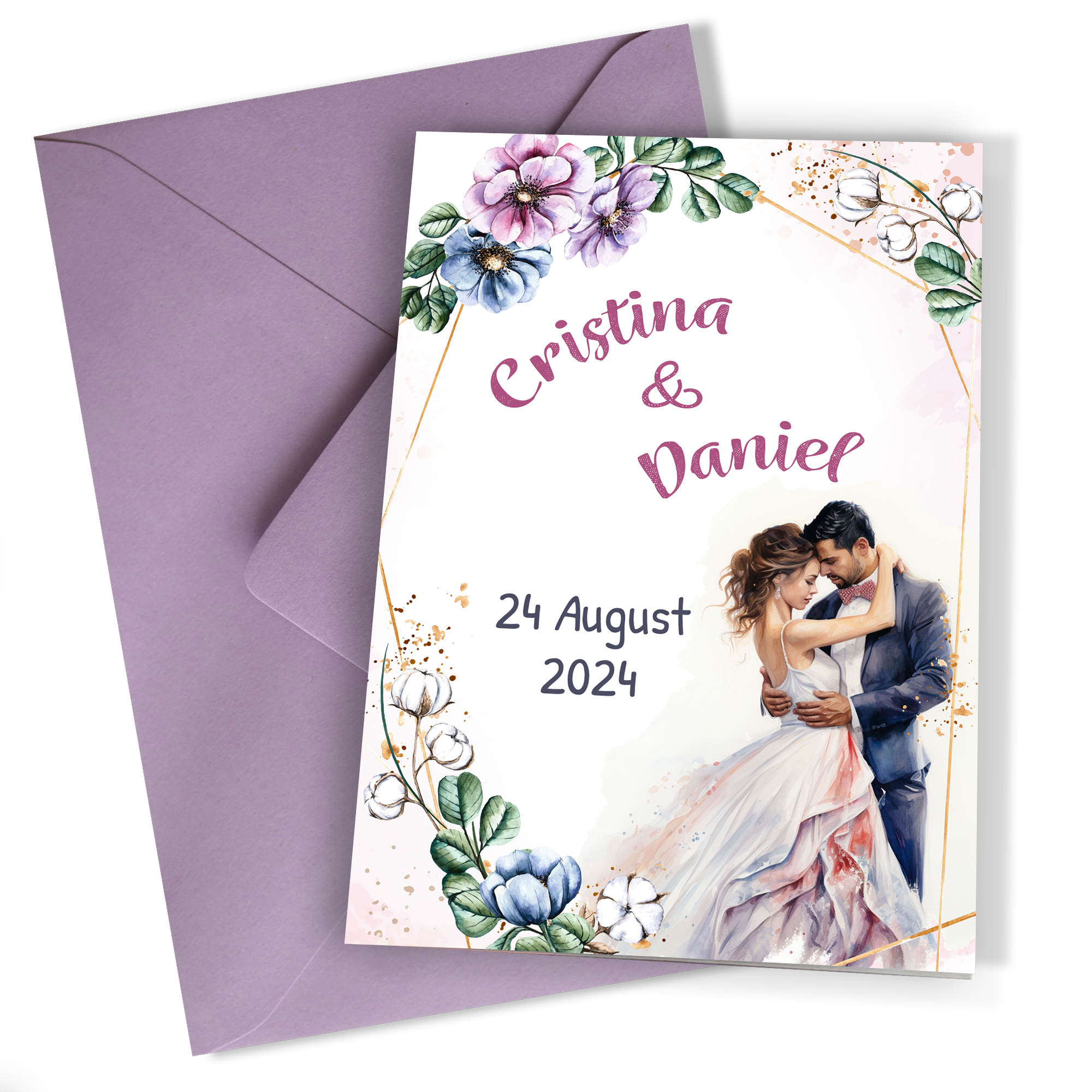 Invitatii nunta clasice cu plic Lila - Mire si mireasa - INC-05