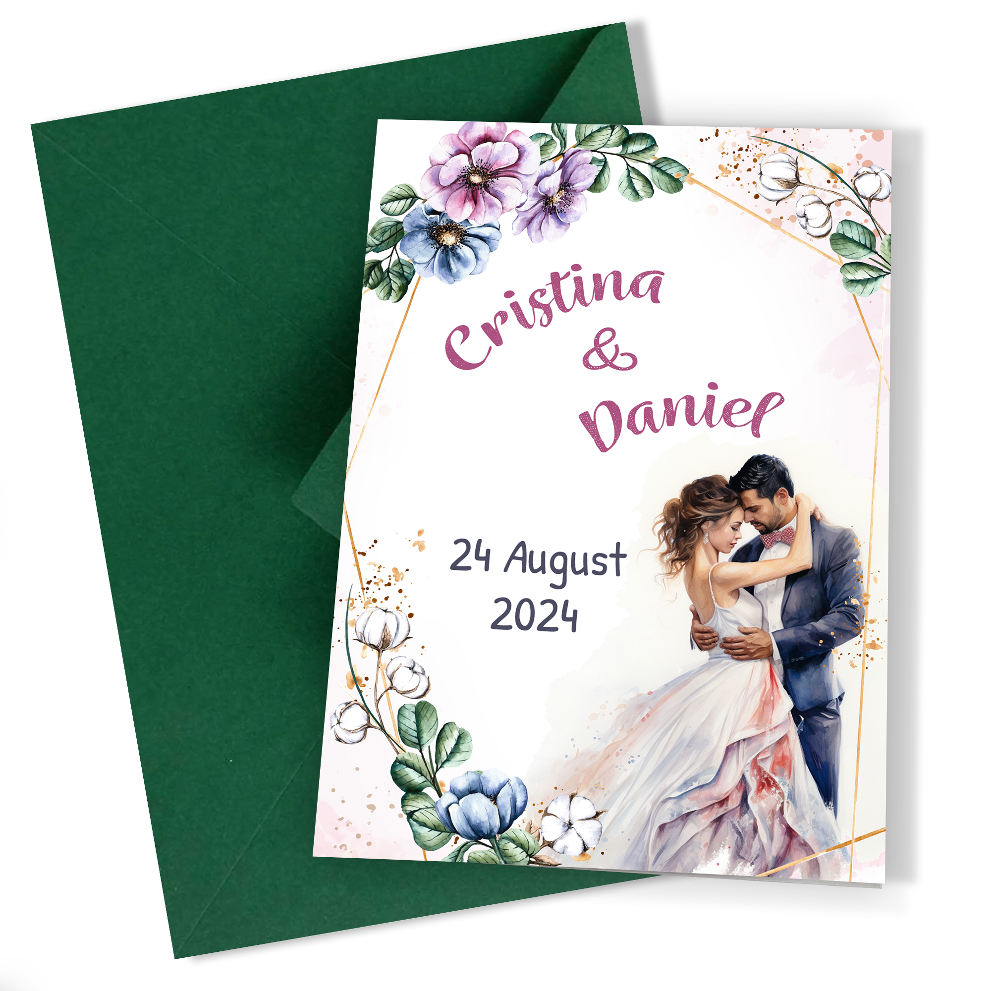 Invitațiile de nuntă clasice „Mire și Mireasă” reprezintă esența eleganței tradiționale, fiind o alegere perfectă pentru cuplurile care doresc să își anunțe marele eveniment într-un stil atemporal. Aceste invitații sunt o fuziune armonioasă între designul clasic și detalii moderne, creând astfel o impresie memorabilă și plină de rafinament.