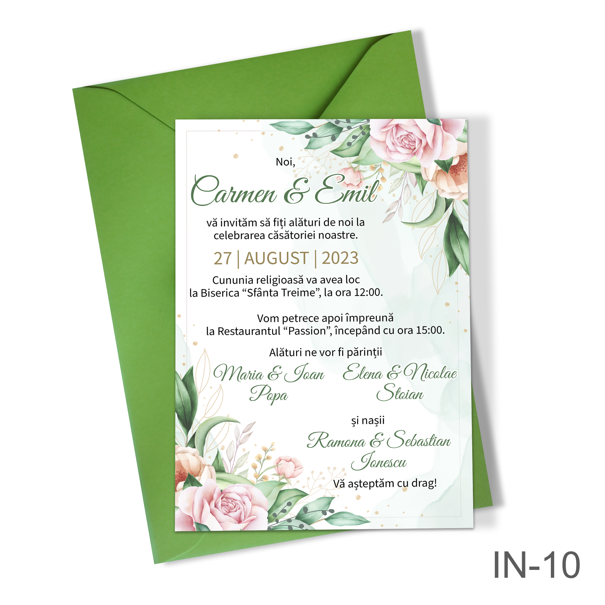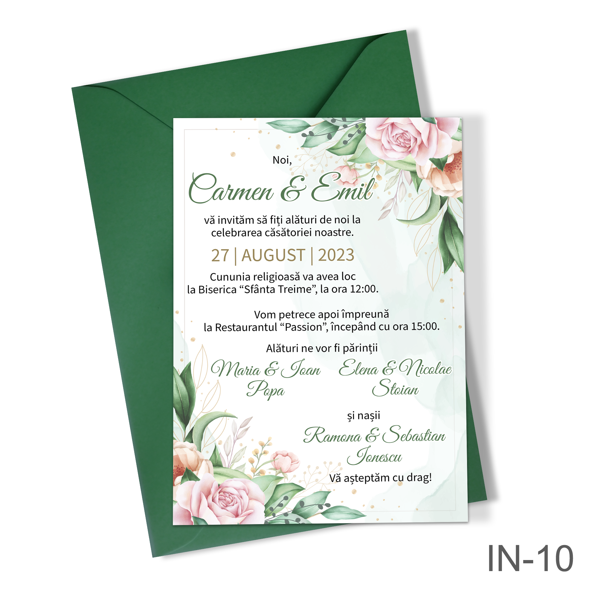 Invitatii pentru nunta cu tema Decoratiuni florale, gata tiparite si asamblate.
