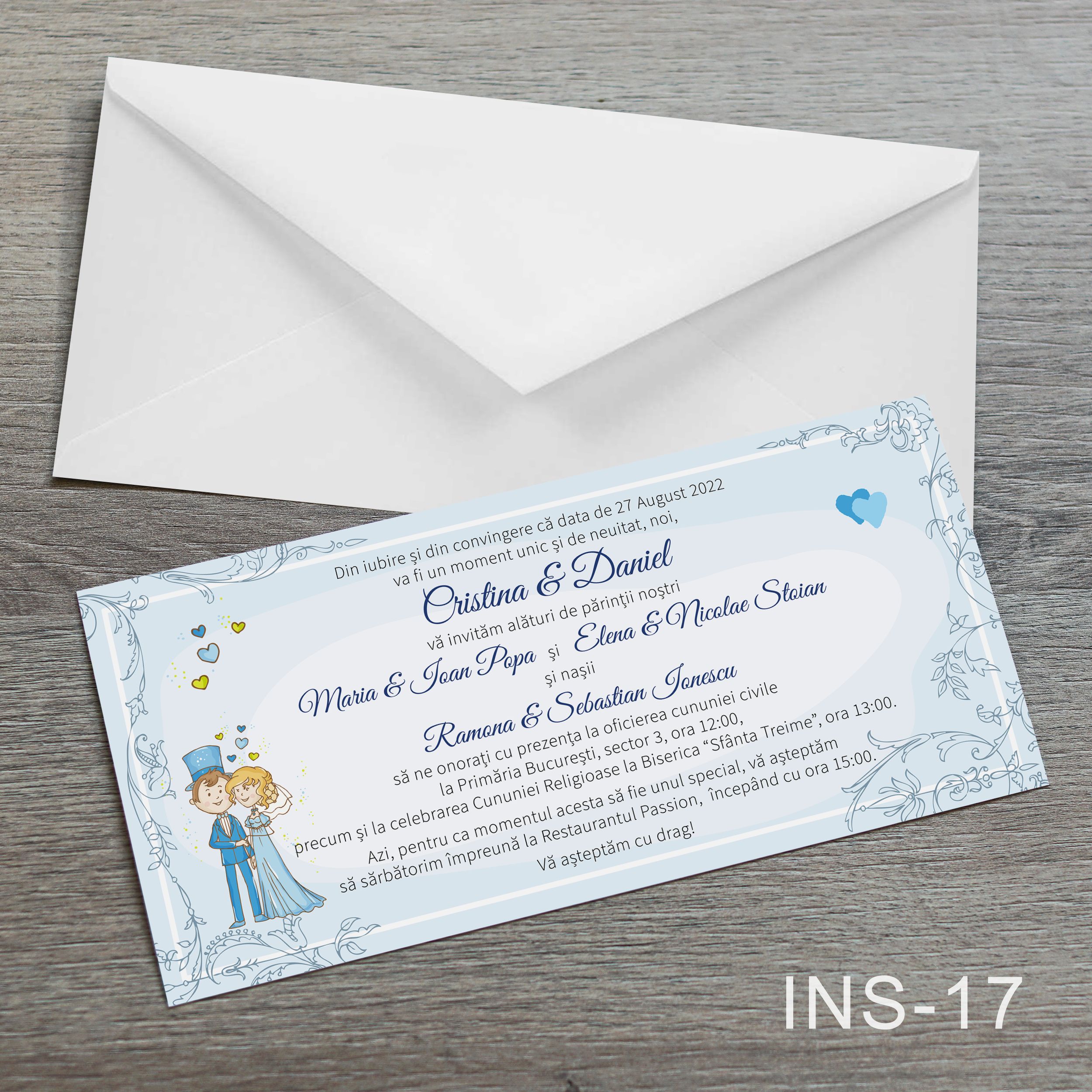 Invitatiile sunt simple si vin insotite de plic alb.