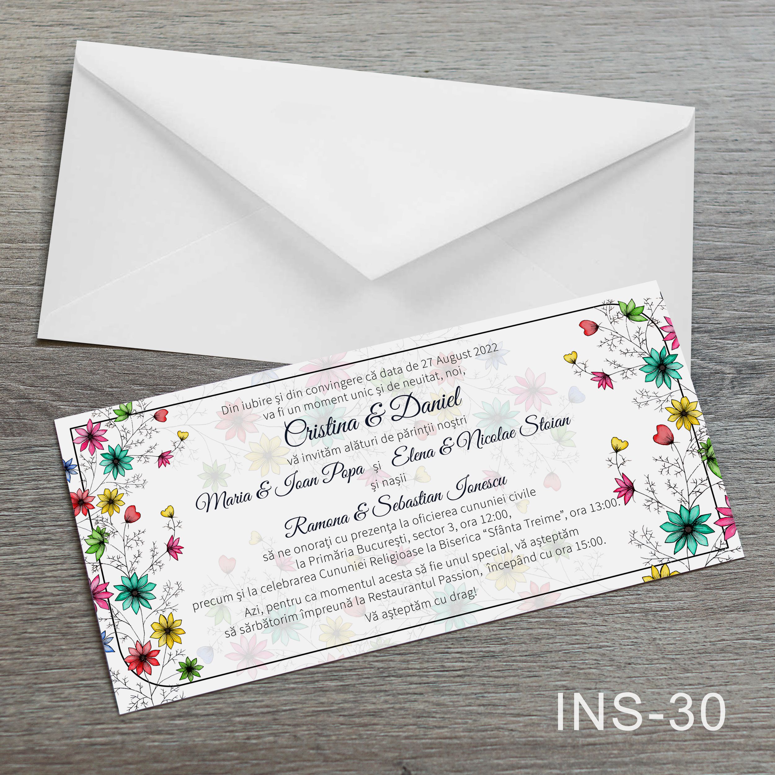 Invitatii nunta clasice - Decoratiuni florale - INC-39