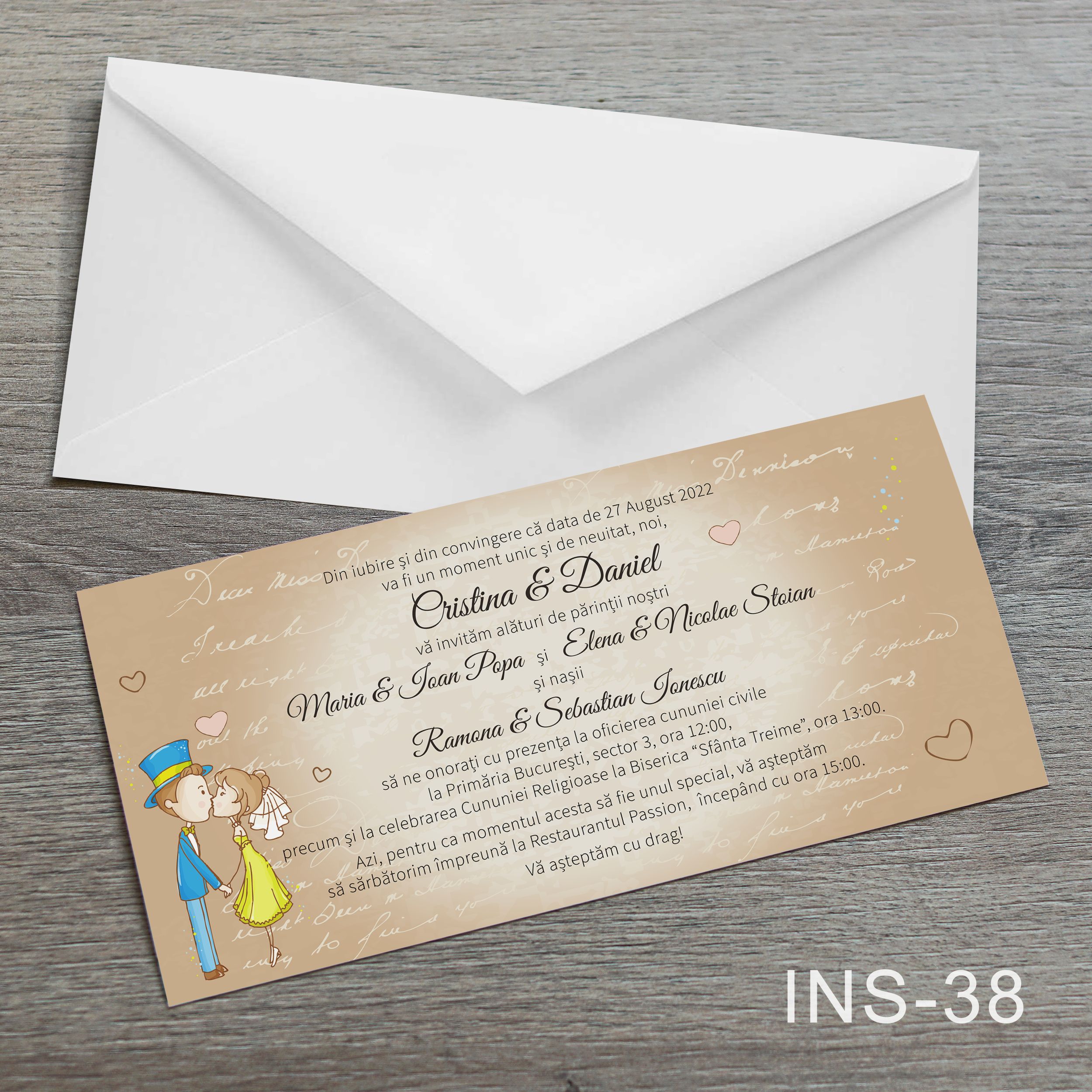Invitatiile pentru nunta sunt realizate din carton lucios de 250g/mp.